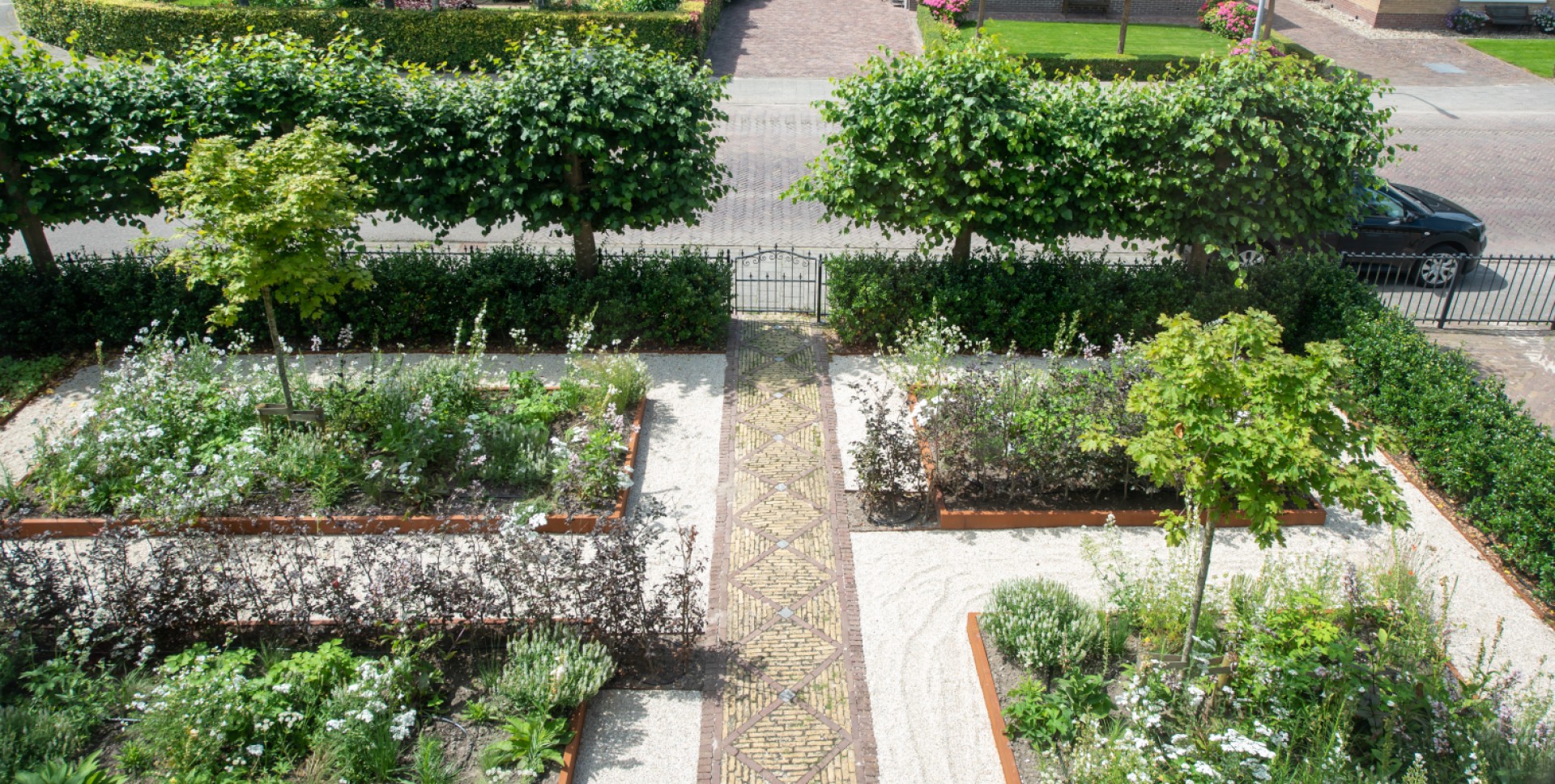 Omdat symmetrie en zichtlijnen een belangrijke rol spelen in het tuinontwerp, is er vaak een duidelijk middelpunt, zoals een gazon, pergola, klinkerpaadje, karakteristiek beeld of kunstwerk of een vijver. Zulke elementen zijn voor de liefhebbers van een klassieke tuin echte eyecatchers. Pas de kunst van het spiegelen aan bij een klassieke tuin!